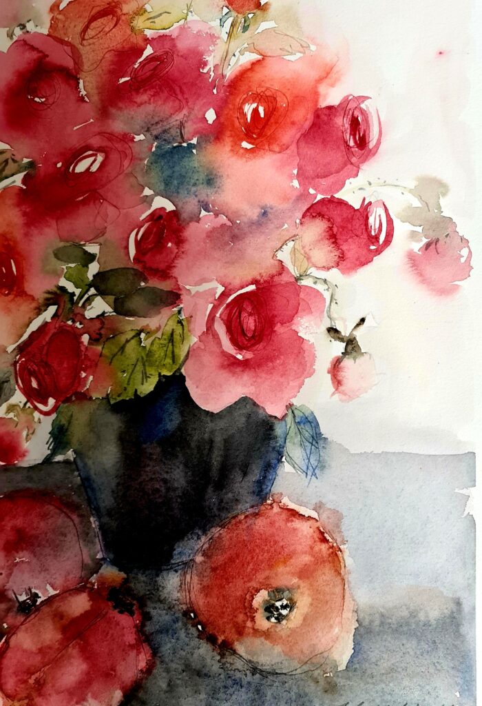 „Still life with apples and roses“ 57 cm x 38 cm – 2023